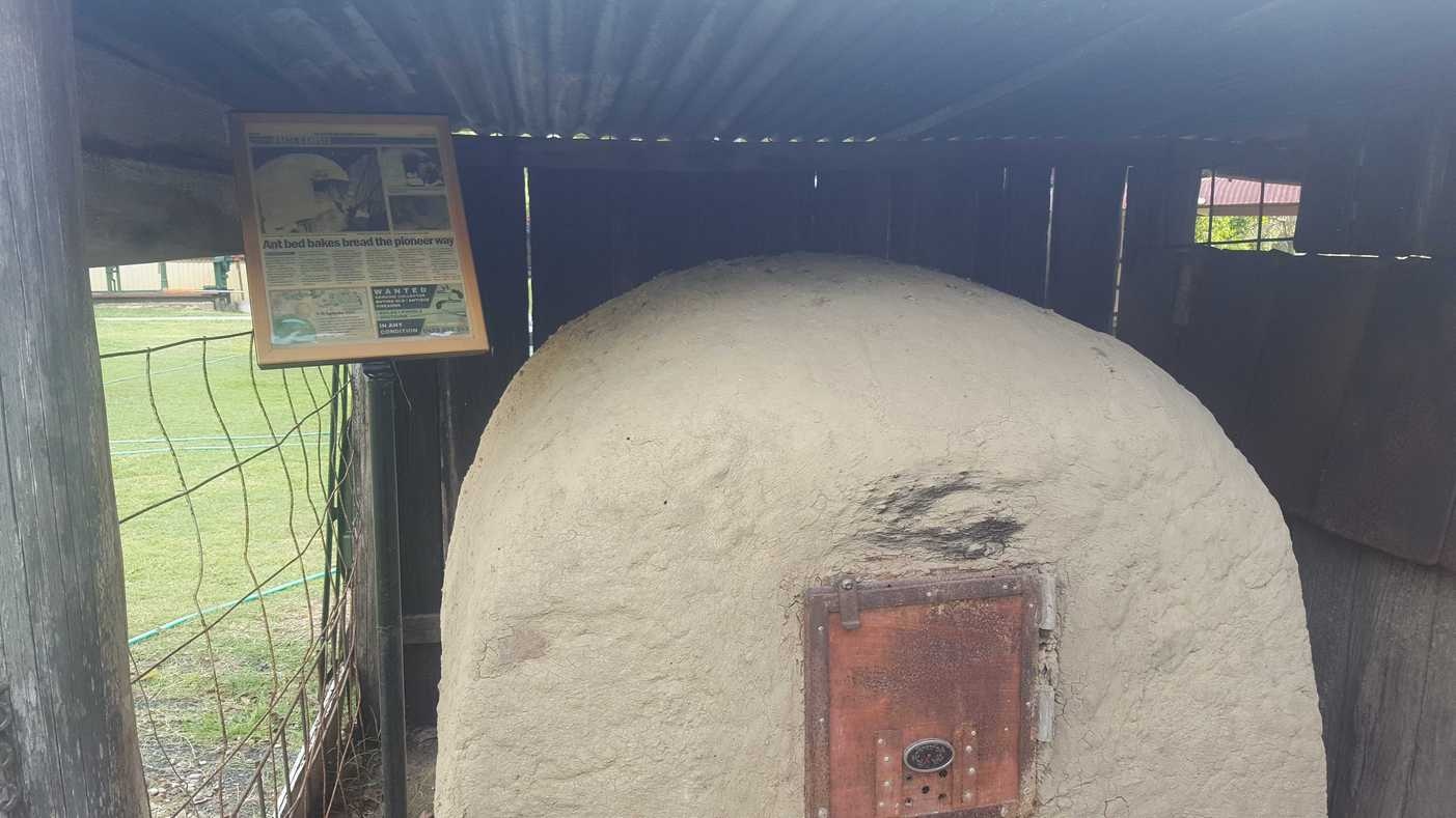 Located where it is likely the original kitchen of the slab hut would have been situated. This oven was originally built at Blenheim in 1931 and made from ant bed nest mud (or termite mound mud) and it was used until 1945 for baking bread. It has been used for baking scones and damper at previous special events at the village but requires to be kept unused now to preserve the oven. It has been recognized by the Qld Museum as being of National Significance and is one of the best preserved examples of its type in Australia.