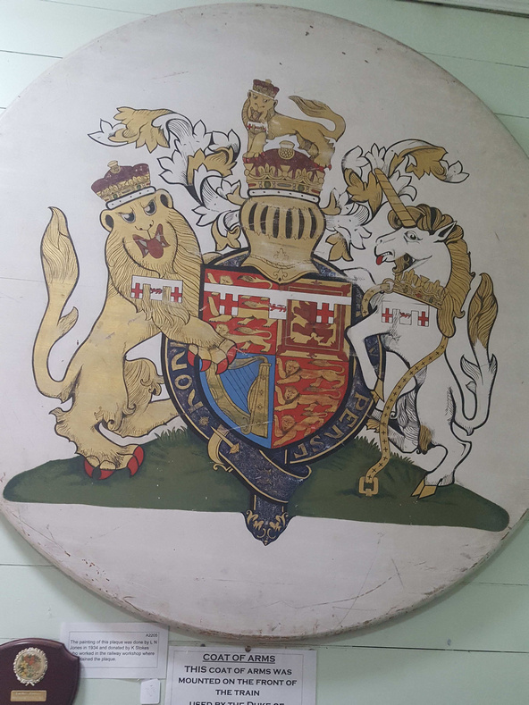 Inside the office is a large wooden plaque with the Coat of Arms on it that was mounted on the front of the train used by The Duke of Gloucester during his Royal tour to Laidley in 1934.